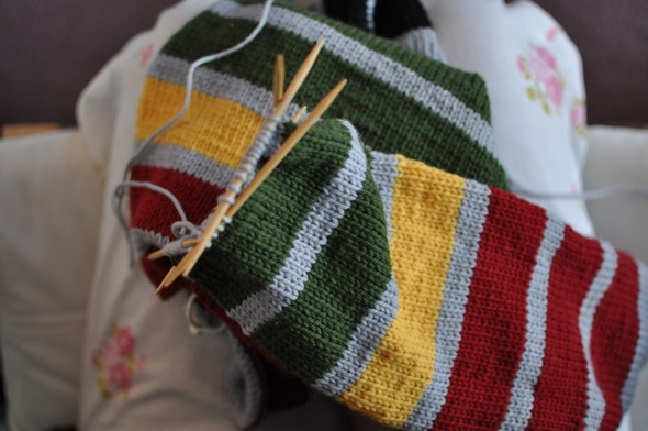 For Christmas this year Rob got a box of fabric squares with a picture on top. Slowly I’ve been sewing all those squares together and cutting them up and sewing them together again and cut them up again. Now I’ve got a fabulous collection of shiny flying geese to sew into a quilt for him. When Rob’s at his desk or watching TV he’s nearly always wrapped in a quilt and the two we’ve got in use right now are getting bit worn. I’ve had these shiny dot fabrics in my stash for ages and it was exciting the finally get them out and cut them up. They told me they wanted to be space ships so this quilt is going to be a whole fleet of ships. It’s was fun to design and I’m excited about putting it together now that the geese are finished. I noticed sometime after I’d finished cutting things out and started sewing that I forgot to add the seam allowance when I was doing my math. This means the quilt will come out a bit smaller than I’d originally planned. Depending on how much smaller than turns out to be I might do some sort of borders or something to bring it back up to size. We'll see.