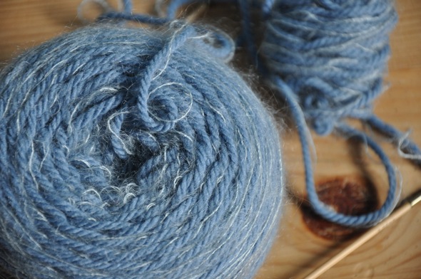 a ball of fuzzy blueness. I love this ball of yarn. It's a skein of Quince & Co.'s Osprey yarn in the colour Delft wound together with Garnstudio DROPS Kid-Silk (colour 6047). I started knitting this into a hat before Christmas last year but only got a couple of rows in before I realized I needed the needles for a present. Now I want to wear it and can't decide on a pattern. I was originally planning to make Felicity. I also really loved the lace edging on Ripley. I was thinking of doing a bit of a mash-up but when I went to look up the patterns just now I found this and this and this. So now I'm completely undecided. I wonder how long I've got before we get out first snow?