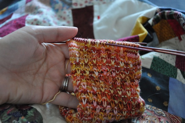 Once again I substituted a short-row heel for the heel-flap-and-gusset construction the pattern called for. And once again this lead to me missing an important bit of information about how the foot was supposed to go. Lesson learned: always read through everything … especially if you're planning on making some changes.